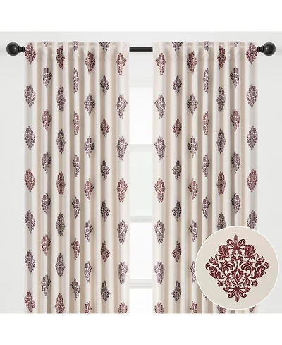 Hlc.me Liam Ogee Ikatt Damask Patterned Window Grommet Curtains Bedroom - Light Blocking Darkening Window Panels, Set of 2 (Spice Red