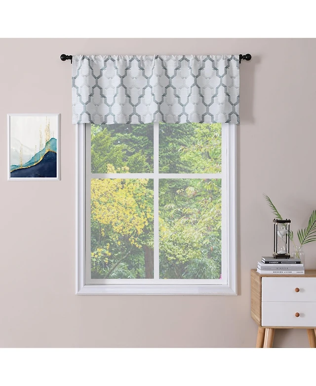 Kate Aurora Floral Embroidered Sheer Rod Pocket Kitchen Curtain Tier & Valance Set - 58 in. W x 15 L, Aqua