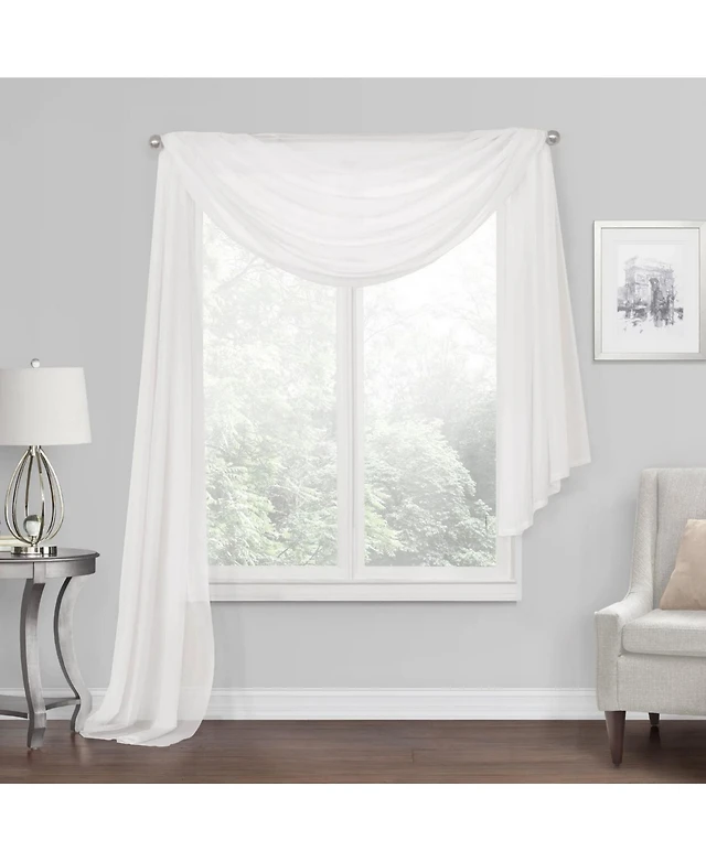 Kate Aurora Elegant Sheer Voile Window Scarf Valance - White