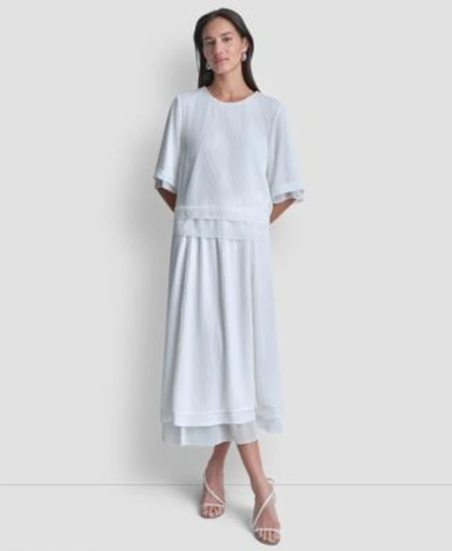 Dkny Womens Crewneck Layered Top Layered Window Pane Ankle Skirt
