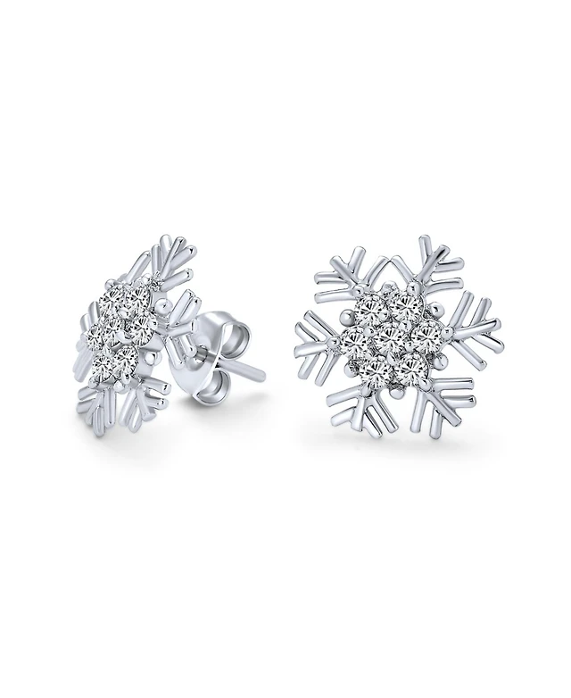 Bling Jewelry Cubic Zirconia Pave Clear or Blue Cz Christmas Holiday Party Snowflake Stud Earrings Sterling Silver