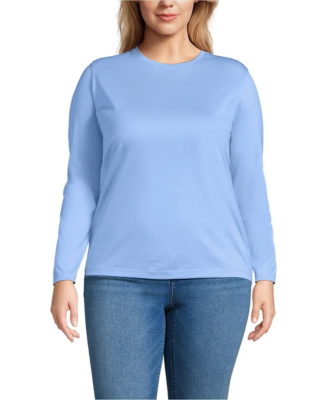 Lands' End Plus Relaxed Supima Cotton Long Sleeve Crew Neck T-Shirt