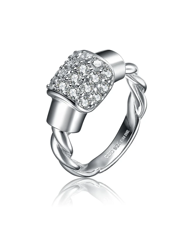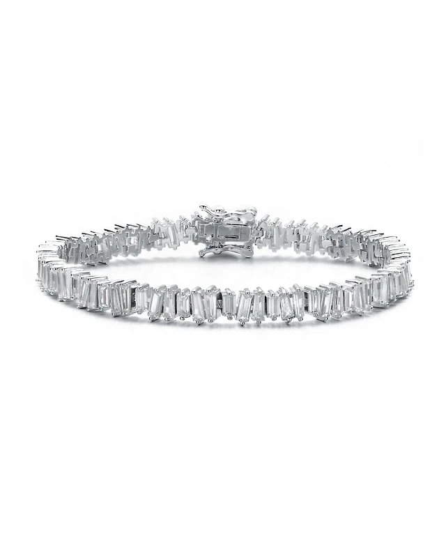 Sterling Silver Rhodium Plated Clear Cubic Zirconia Modern Tennis Bracelet