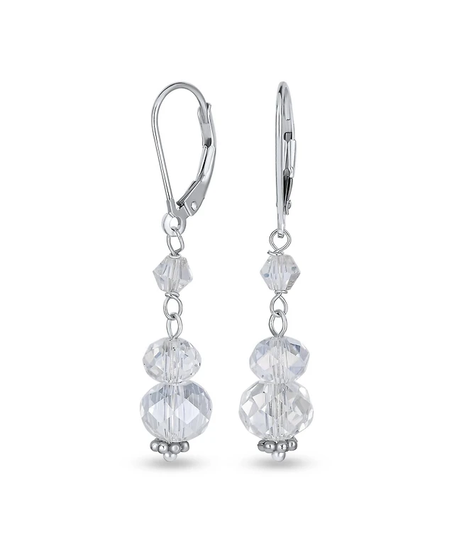 Bling Jewelry Clear Rondelle Crystal Dangle Earrings Sterling Silver Lever Back