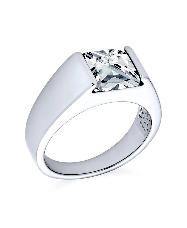 Bling Jewelry 3CT Art Deco Style Square Princess Cut Solitaire Clear Cz Promise Ring Set Sterling Silver