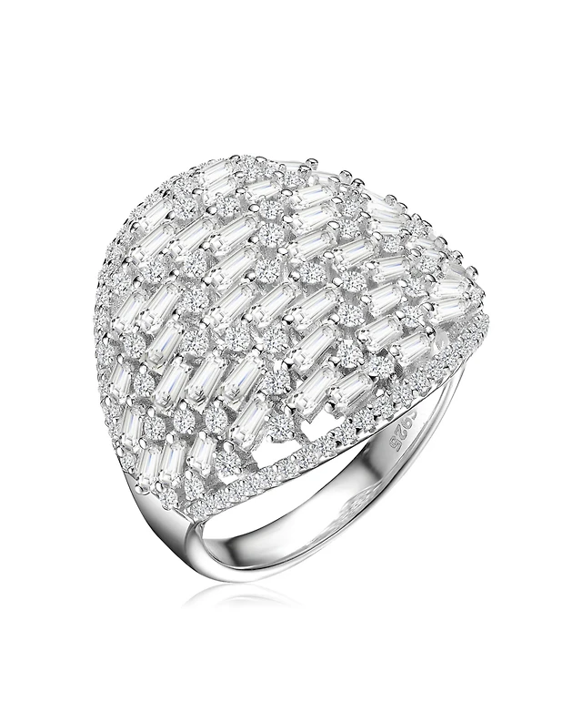 Bling Jewelry Timeless Classic Style 2CT Rectangle Clear Emerald Cut Three Stone Past Present Future Promise Ring Sterling Silver Plain Band
