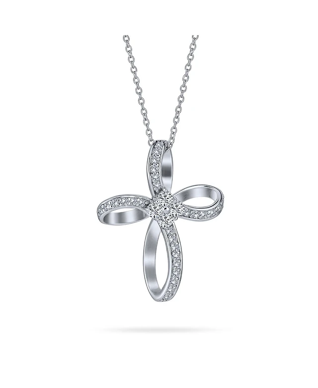 Bling Jewelry Ribbon Twist Open Religious Infinity Cross Pendant Necklace Pave Cz Cubic Zirconia Sterling Silver 1.25 Inch