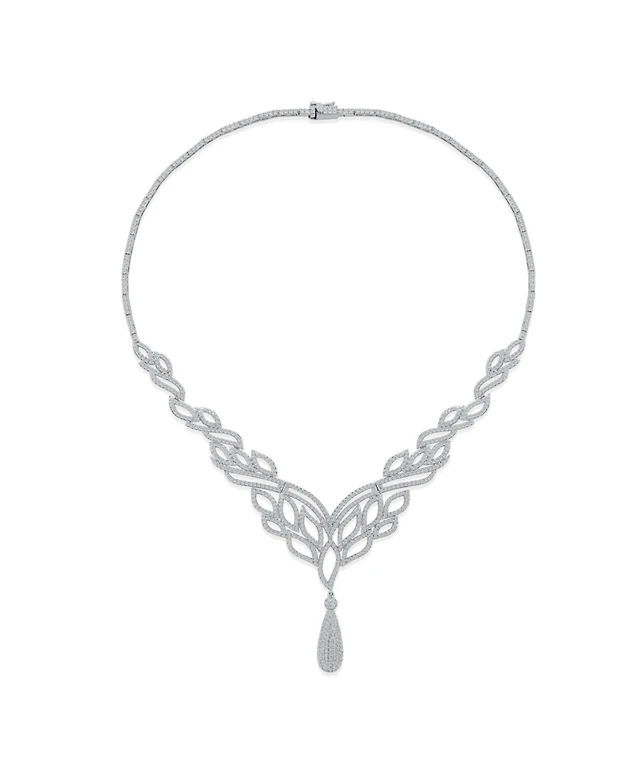 Bling Jewelry Art Deco-Inspired Leaf Statement Collar Necklace With Cleavage Dangling Teardrop Micro Pave Cubic Zirconia Cz