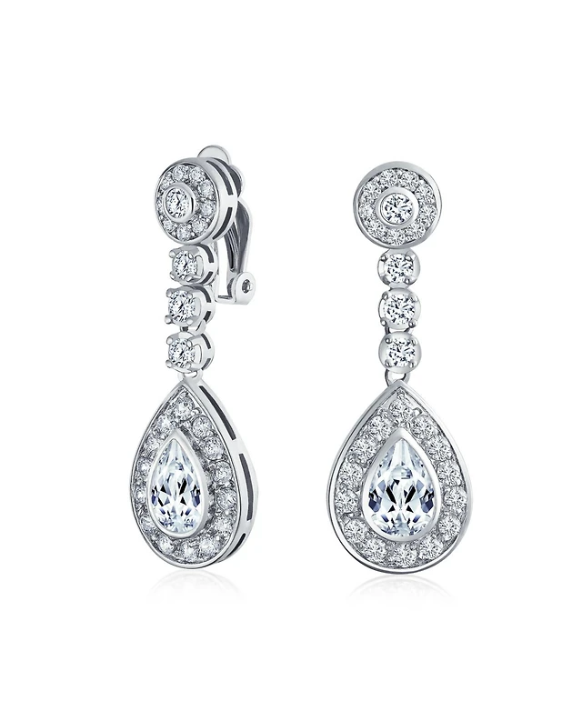 Bling Jewelry Art Deco Style Dangle Cubic Zirconia Halo Cz Teardrop Statement Chandelier Earrings