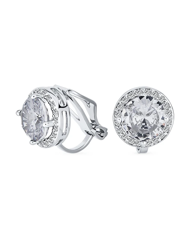 Bling Jewelry Classic 2CT Round Cz Cubic Zirconia Solitaire Halo Clip On Stud Earrings Non Pierced 7MM