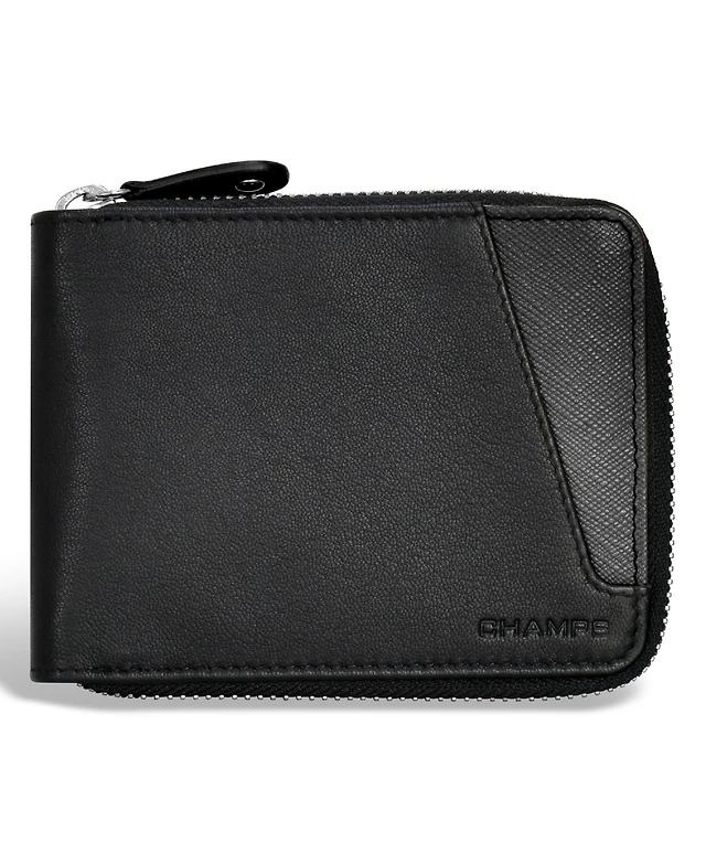 Champs Men's Onyx Collection Leather Zip Bi-Fold Wallet