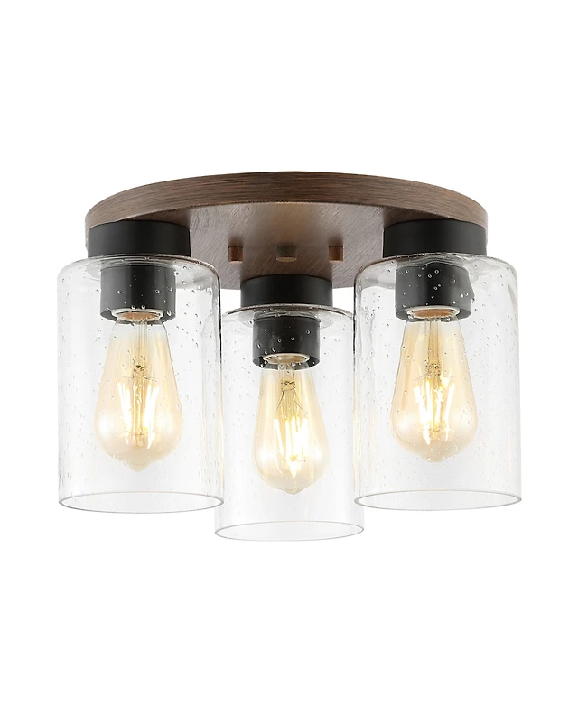 Lina 13.75" 3-Light Modern Industrial Iron, Seeded Glass Led Semi Flush Mount