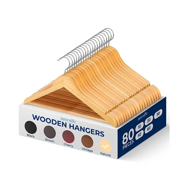 Serenelife 30 Pcs. Premium Wooden Pants Hangers Heavy Duty Hanger Set With Chrome 360 Xb0 Swivel Hook Retro