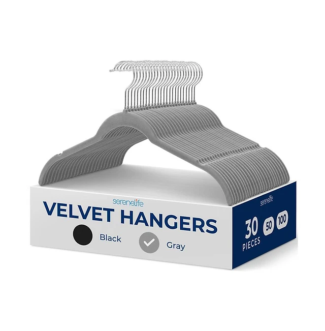 SereneLife 50-Piece Velvet Shirt Hangers - Non-Slip, Sturdy, Space Saving and Heavy Duty Coat Set with 360° Swivel Hook for Clothes (Grey