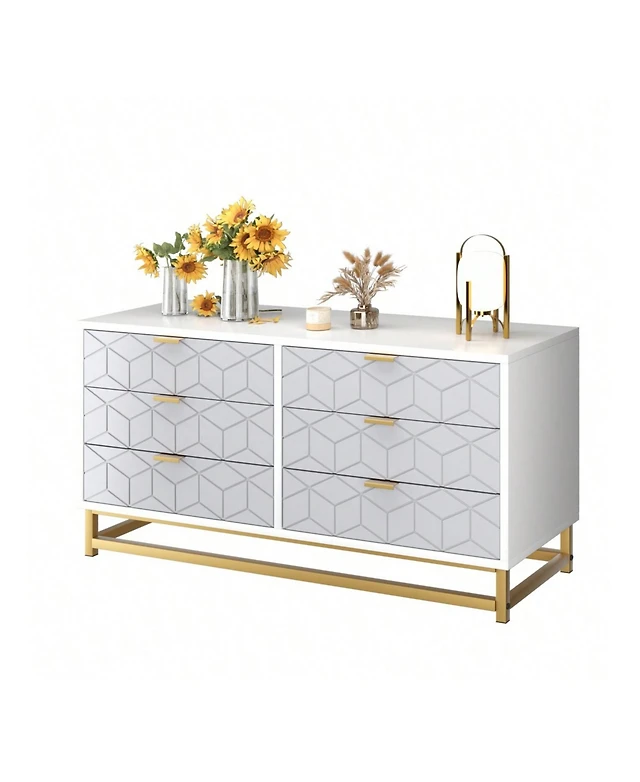 gaomon White 6 Drawer Dresser for Bedroom, 56” Wide Wood Dresser Organizer with Metal Legs