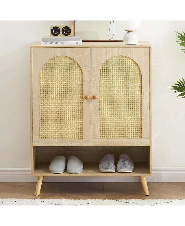 gaomon Rattan Shoe Cabinet for Entryway Storage Wooden Shoe Rack Organizer with Adjustable Shelves Closed Dustproof Furniture for Hallway Living Room