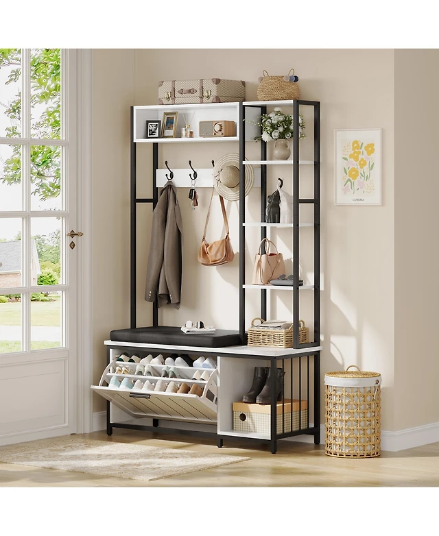 Slickblue 4-in-1 Hall Tree Coat Rack with 11 Hooks and Shoe Bench