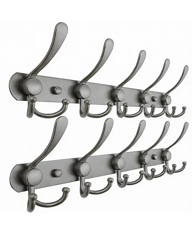 Yigii Heavy Duty Stainless Steel 5-Tri Hook Wall Rack for Coats, Hats, Towels, Purse, Scarfs, Robes
