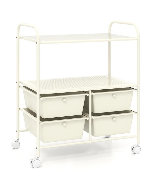 4-Tier Rolling Storage Cart Slim Kitchen Cart on Wheels with Open Shelves and Handle