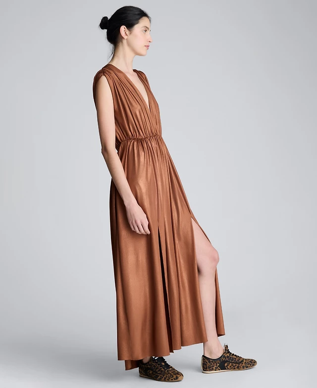 Anne Klein Women's Printed Metallic Sleeveless Midi Dress