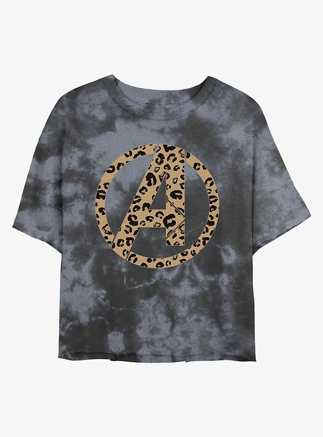 Marvel Black Widow Leopard Fill Logo Tie-Dye Girls Crop T-Shirt