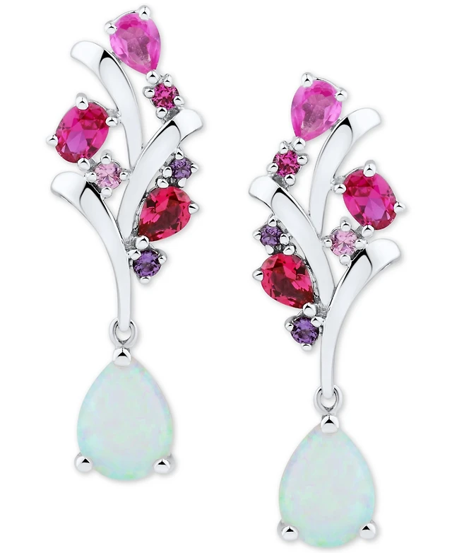 American West Jewelry Sterling Lace Agate, Sodalite, and Agate Cluster Pear Shaped Dangle Earrings