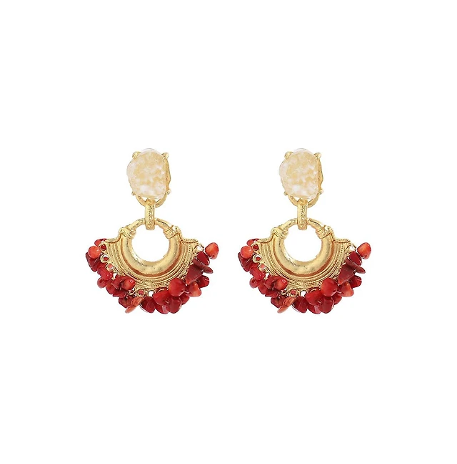 Ink + Alloy Samantha Leaf Cluster Long Dangle Earrings Brass
