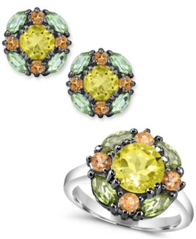Multi Gemstone and Diamond Accent Flower Stud Earrings in 14K Gold-Plated Sterling Silver