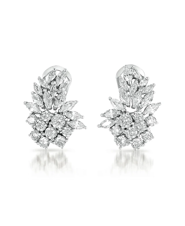 Genevive Cubic Zirconia Sterling Silver White Gold Plated Marquise Cluster Earrings