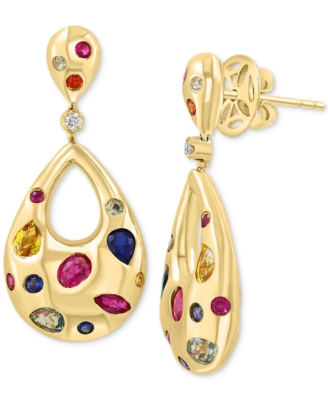 Effy Collection Diamond (1/20 ct. t.w.) & Multi Sapphire (2-1/3 ct. t.w.) Teardrop Earrings in 14k Gold Over Silver