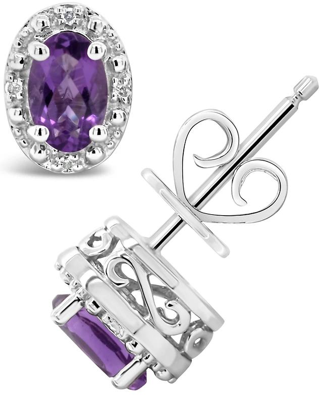 Macy's Amethyst (2-3/8 ct. t.w.) and Diamond (3/8 ct. t.w.) Halo Stud Earrings in 14K White Gold