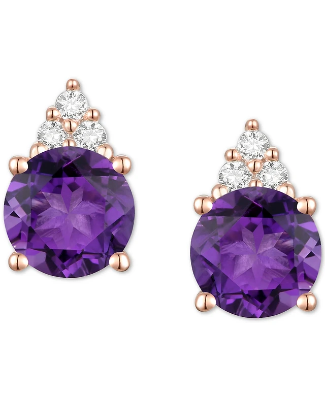 Effy Amethyst (6-1/4 ct. t.w.) and Diamond (1/3 ct. t.w.) Clover Stud Earrings in 14k Rose Gold