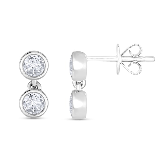 Vera Wang Love Collection 1/2 CT. T.w. Princess-Cut Diamond and Blue Sapphire Drop Earrings in 14K White Gold