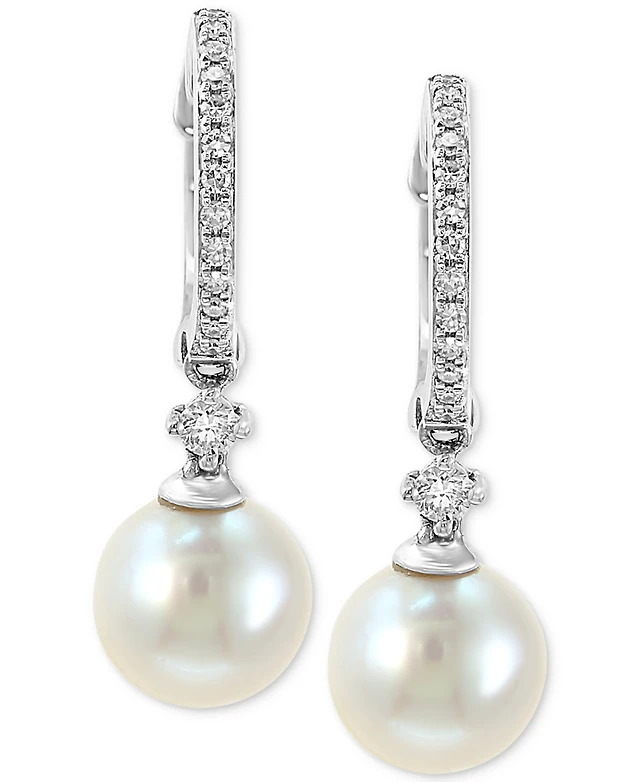 Macy's Cultured Fresh Water Pearl (9mm) & Diamond (1/10 ct. t.w.) Drop Earrings in 10k Yellow Gold