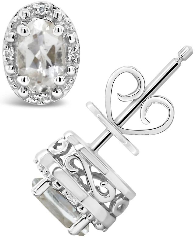 White Topaz (1-1/8 ct. t.w.) and Diamond Accent Stud Earrings in Sterling Silver