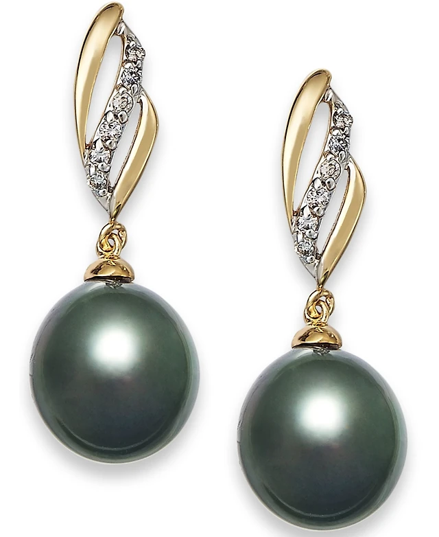 Tahitian Pearl (9 mm) with Diamond (1/10 ct. t.w.) Drop Earrings in 14k Gold