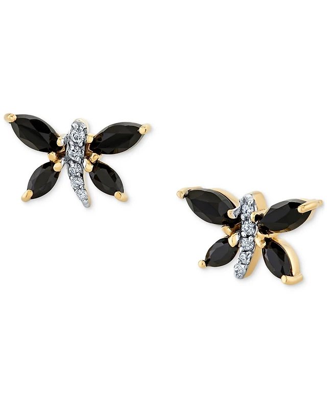 Macy's White Diamond (3/8 ct. t.w.) and Sapphire (0.01 ct. t.w.) Earrings in 10k White Gold
