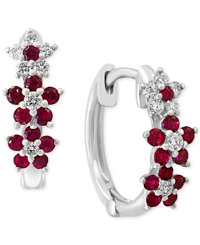 Lali Jewels Ruby (1/3 ct. t.w.) & Diamond (1/8 ct. t.w.) Extra-Small Hoop Earrings in 14k Yellow Gold, 0.15" (Also Available in White Gold)