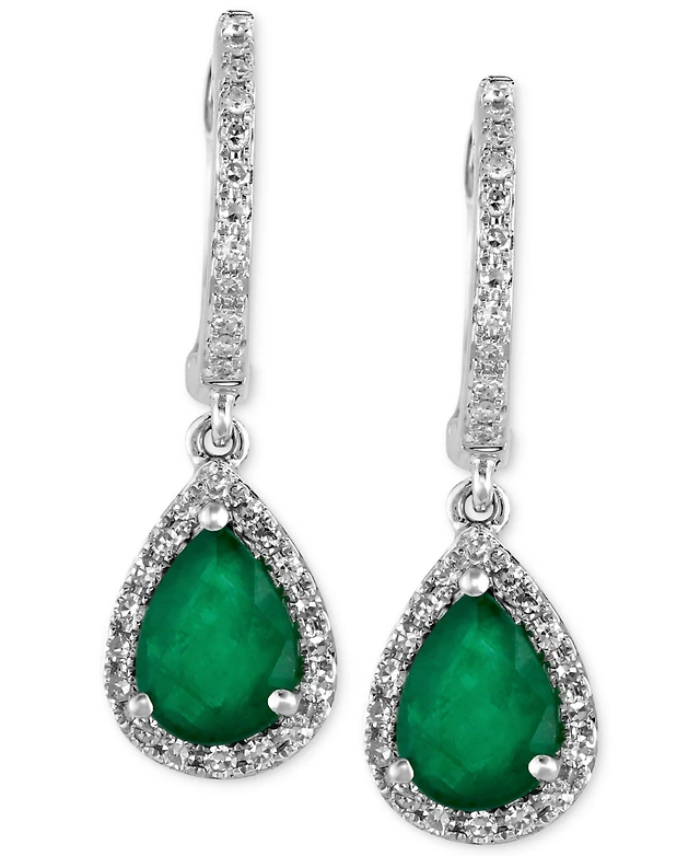 Effy Emerald (1-1/8 ct. t.w.) and Diamond (1/4 ct. t.w.) Drop Earrings in 14k White Gold, Created for Macy's