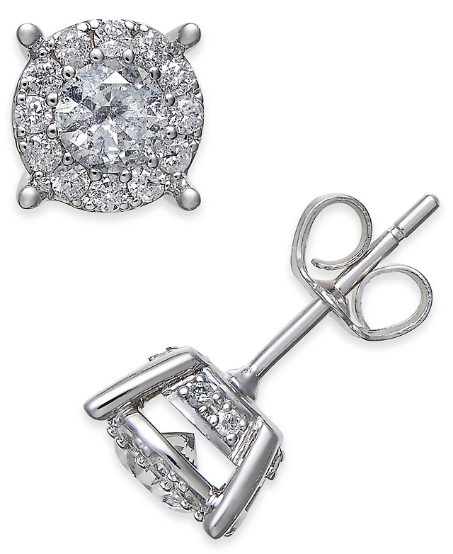 Diamond Halo Two-Level Stud Earrings (1 ct. t.w.) 14k White, Yellow or Rose Gold
