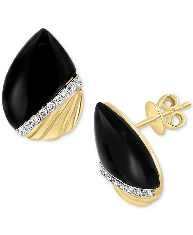 Effy Onyx & Diamond (1/10 ct. t.w.) Pear-Shaped Ridged Stud Earrings in 14k Gold