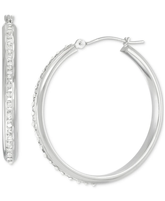 2-Pc. Set Diamond In & Out and Polished Small Hoop Earrings (1/6 ct. t.w.) in Sterling Silver