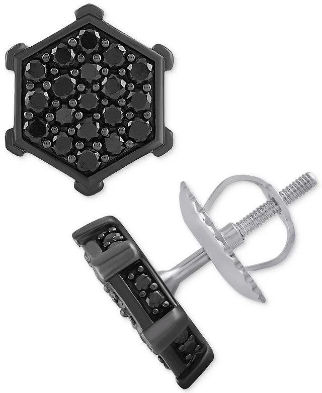 Men's Diamond Round & Baguette Hexagon Halo Cluster Stud Earrings (1/4 ct. t.w.) in 10k Gold