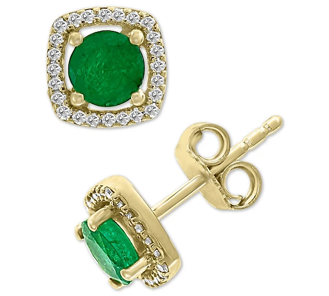 Square Emerald Hoop Earrings in 10K Gold