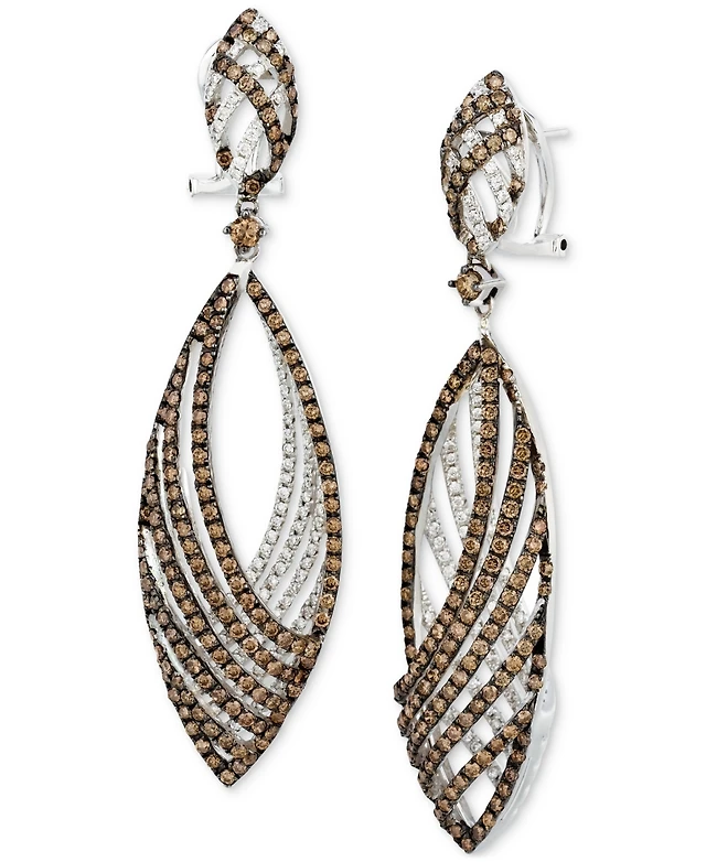Le Vian Chocolate Quartz (2-1/2 ct. t.w.) & Diamond (5/8 ct. t.w.) Dangle Hoop Earrings in 14k Gold