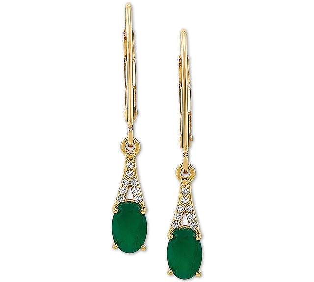 Le Vian Costa Smeralda Emeralds (1-3/8 ct. t.w.) & Diamond (1/20 ct. t.w.) Leverback Earrings in 14k Gold