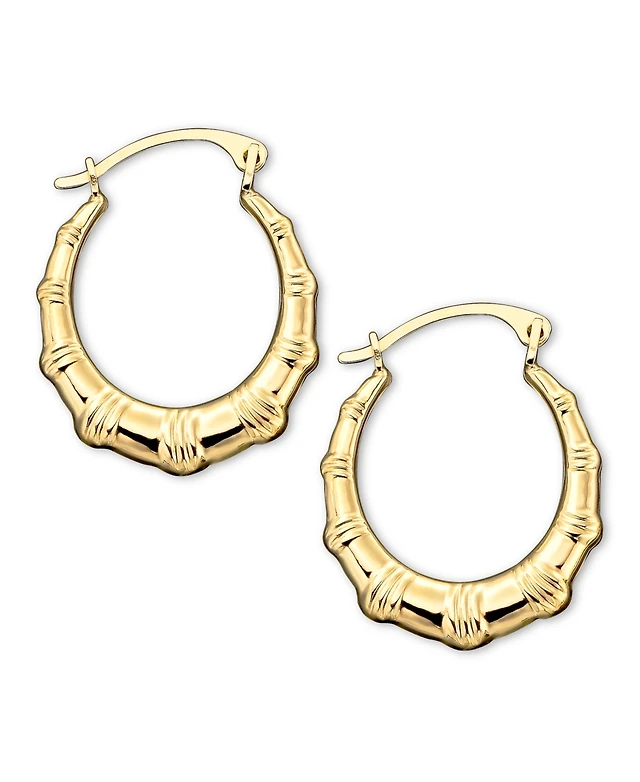 Italian Gold Oval Textured Hoop Earrings in 14k Gold