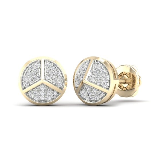 Previously Owned Men's Diamond Pyramid Stud Earrings 1/8 ct tw Round-cut 10K Yellow Gold