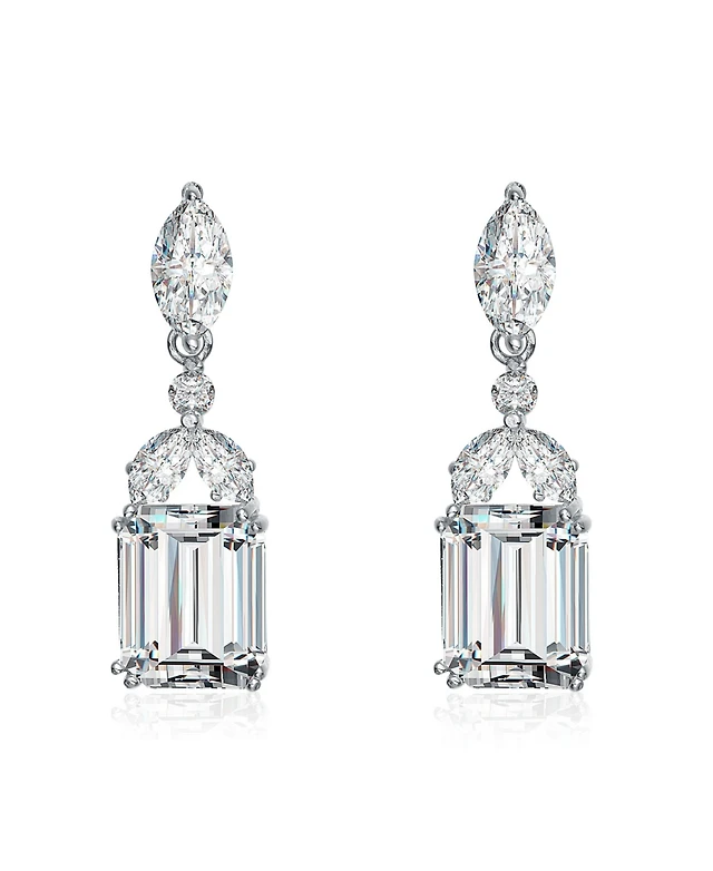 Sterling Silver White Gold Plated Cubic Zirconia Lantern Earrings