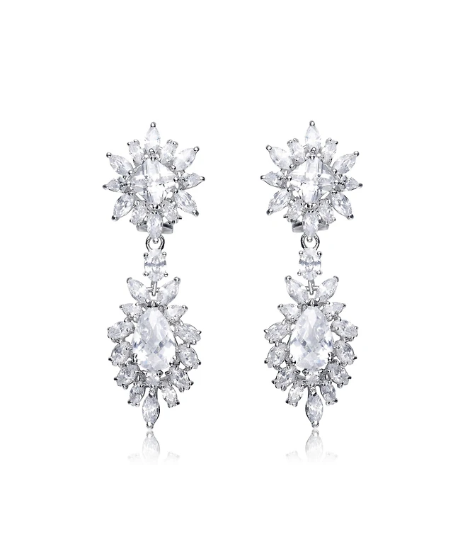 Sterling Silver Cubic Zirconia Icicle Spike Dangle Earrings